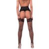 El liguero Jelly es un sensual conjunto de ropa interior de la colección LivCO Corsetti Fashion. Incluye liguero con medias. Todo está acabado en un elegante color negro. El liguero está hecho de encaje fino. Cubre el cuerpo desde las caderas hasta la cintura. Su anchura hace que parezca muy impresionante y moldea ópticamente la figura. El cinturón también tiene costuras verticales que le dan un carácter depredador y lo estilizan ópticamente. Los tentadores adornos en forma de inserciones diagonales de material brillante están adornados con elementos decorativos plateados. La parte delantera del liguero se cierra con cómodos ganchos. La atractiva espalda con abertura por encima de las nalgas está equipada con un cordón tipo corsé. Las medias de rejilla con malla grande se sujetan a la cintura con tirantes finos y ajustables. Su parte superior está decorada con encaje con adorno floral. El conjunto está fabricado en material flexible que se adapta a la forma del cuerpo y realza la figura.